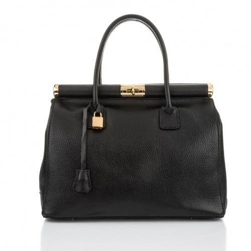 Сумка формат А4 з циліндровим замком шкіряна - чорний