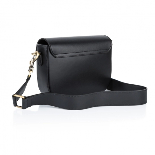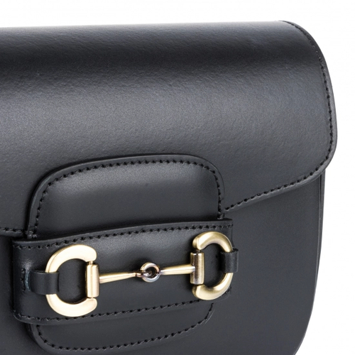 Сумка крос-боді шкіряна з широким ременем та великою пряжкою - чорний